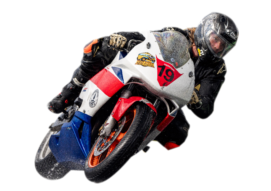Even in middle school, I installed an engine kit on my pedal bike and ripped around the school field with friends. My first ride on the road at 16 was a 500cc honda silverwing and later that same year, I was introduced to the thrill of racing. Aboard a PCMRC club rental CRF110 when everything changed. I found my motorsports family, and from that moment on my life, has been set on a path I never thought possible. Cheered on by my dad and brother at nearly every race,  aboard my first real race bike, a pink CBR250, I spent hours practicing in parking lots—always pushing the limits of both my neighbors… and the pavement.